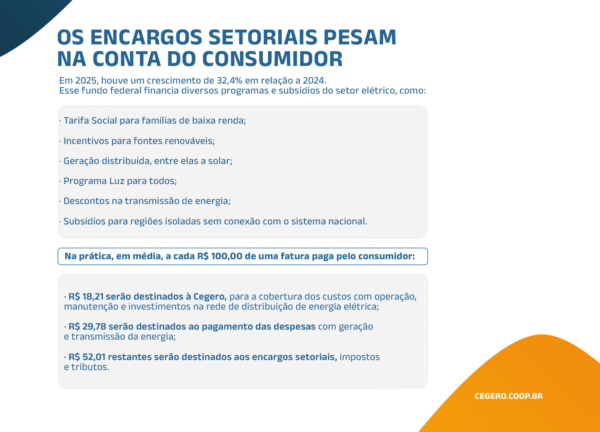 Em 2025, houve ainda um aumento de 32,4% nos encargos setoriais em relação a 2024, recursos estes destinados ao financiamento de programas sociais federais, como a Tarifa Social de Energia, incentivos a fontes renováveis, entre elas a solar, e subsídios para regiões isoladas do país.