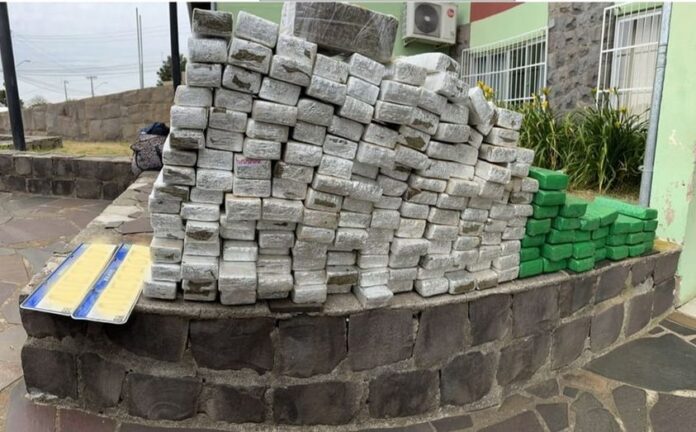 Em mais um ação integrada de combate ao crime organizado, entre as polícias Militar Rodoviária (PMRv), Polícia Rodoviária Federal (PRF) e guarnições de área da Polícia Militar, foi apreendido neste sábado, 29, em São Joaquim, mais de 130kg de maconha.