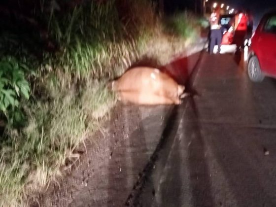 O Corpo de Bombeiros de Urussanga atendeu uma ocorrência de trânsito onde um motociclista de 27 anos acabou colidindo contra um bovino. O acidente aconteceu na Rodovia Genésio Mazon, na altura do bairro São Pedro, por volta das 19 horas do último sábado.