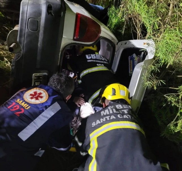 Segundo a guarnição, a equipe de socorro de Lauro Müller já estava no local realizando os primeiros atendimentos. Os bombeiros iniciaram a estabilização do veículo e facilitaram o acesso aos socorristas. Para a extração da vítima em encarceramento mecânico, foi feita a abertura de espaço no veículo e rebatimento dos bancos, sendo ela socorrida pelo porta malas do veículo.