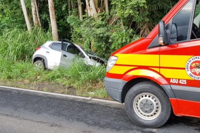 Duas jovens de 18 anos ficaram feridas em um acidente na tarde deste domingo, dia 13, no bairro São Luiz, em Turvo. As vítimas estavam em um Renault Kwid que saiu da pista na SC-108.