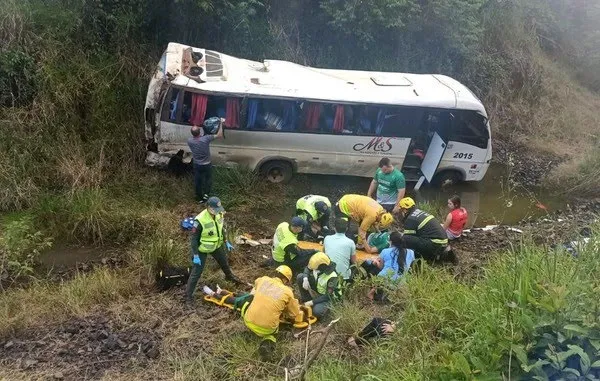 O Corpo de Bombeiros informou que pelo menos 17 dos ocupantes do micro-ônibus ficaram feridos. Uma mulher de 52 anos está em estado grave, com suspeita de trauma toraco-abdominal.