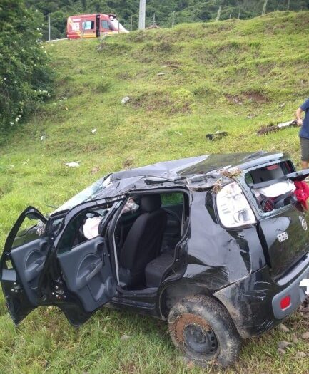 Bombeiro Militar é hospitalizado após capotar carro na SC-390