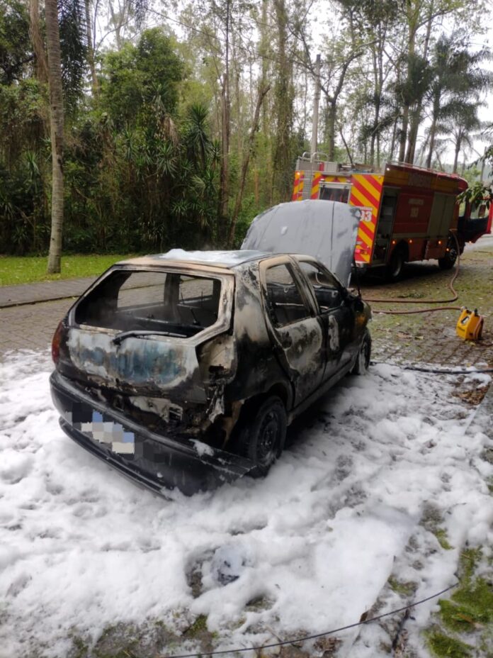Após o combate o veículo ficou aos cuidados do proprietário, que acionou a seguradora para procedimentos cabíveis.