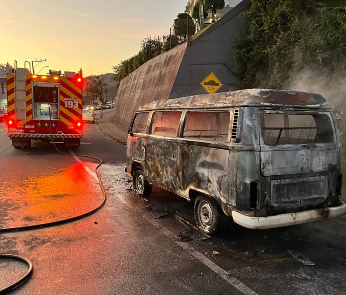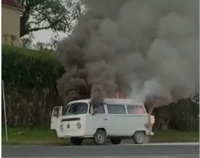 O automóvel VW Kombi já estava totalmente em chamas quando a guarnição chegou ao local. Foram utilizados 500 litros de água para a extinção. A Polícia Militar esteve no local.