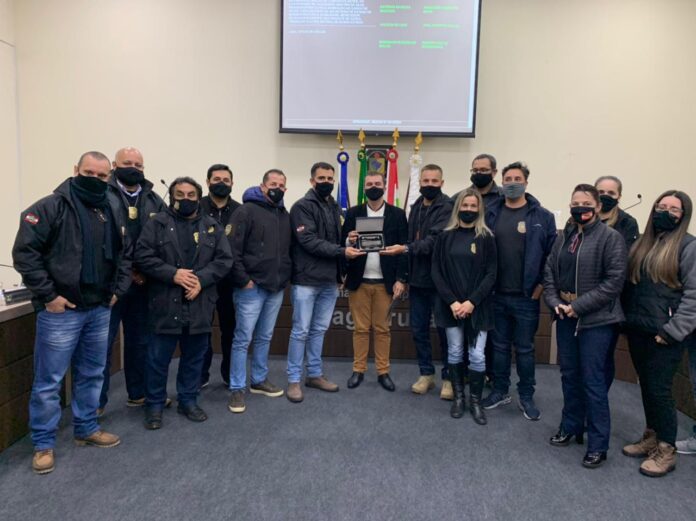 A Câmara de Vereadores de Jaguaruna, no Sul do Estado, aprovou uma moção de congratulações à atuação da Polícia Civil na Comarca de Jaguaruna. A proposição foi do vereador Joel Vitor de Souza em razão dos relevantes trabalhos prestados no município em prol da segurança, “que através de diligências e investigações estão contribuindo para a elucidação de crimes e resultando na diminuição da criminalidade”.