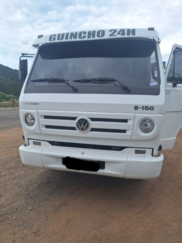 Segundo a PMRv, o caminhão transitava com placas pertencentes a um VW Gol 1.0, emplacado no município de Sangão.