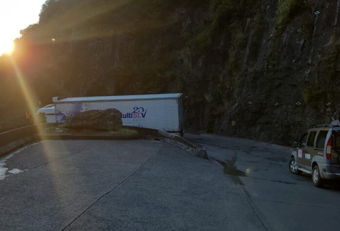 Uma problema mecânico em um caminhão deixou a Serra do Rio do Rastro parcialmente bloqueada nesta quinta-feira (17). O veículo parou na curva do Monumento dos Tropeiros, em Bom Jardim da Serra, impedindo a passagem de ônibus e caminhões.