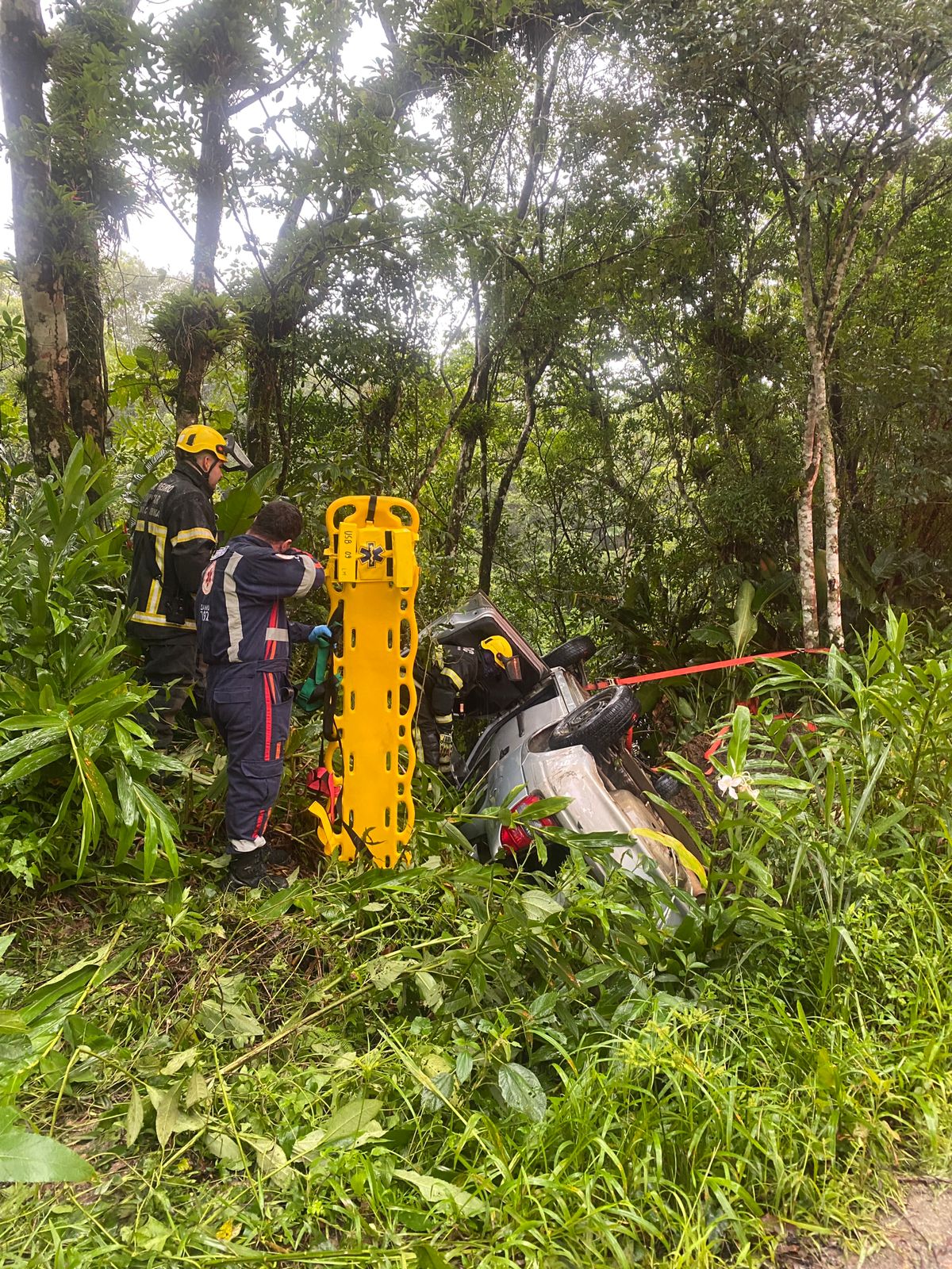 Segundo o Corpo de Bombeiros, uma vítima encontrava-se no interior do veículo, consciente, porém desorientada. Foi realizado o gerenciamento de riscos, a estabilização do automóvel e a retirada segura da vítima, utilizando técnicas de Resgate Veicular (RVE).