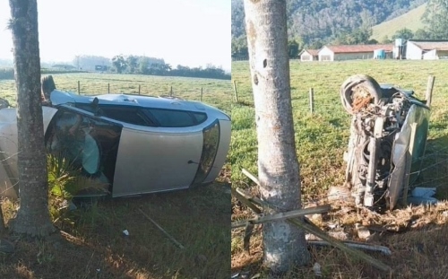 Um acidente foi registrado hoje (6) em Braço do Norte, na localidade de Rio Pequeno, na Entrada do Clube dos Treze.