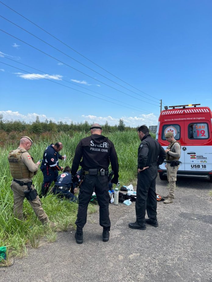 Segundo o Serviço Aeromédico (SAER/SAMU), o paciente permaneceu todo o tempo inconsciente e com respiração ruidosa e agônica, caracterizando um trauma cranioencefálico. Após avaliação da equipe do aeromédico, o paciente foi intubado, estabilizado e deslocado ao Hospital São José em Criciúma, referência em trauma na região.