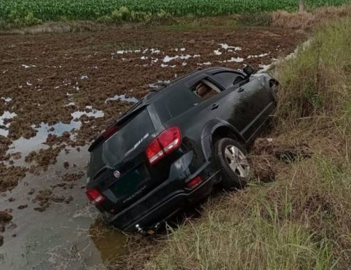 Um veículo com cinco passageiros ficou atolado na granja de arroz por sair da pista no nesta segunda-feira, 24, por volta das 9h, em Forquilhinha, próximo do acesso a São Bento Baixo.