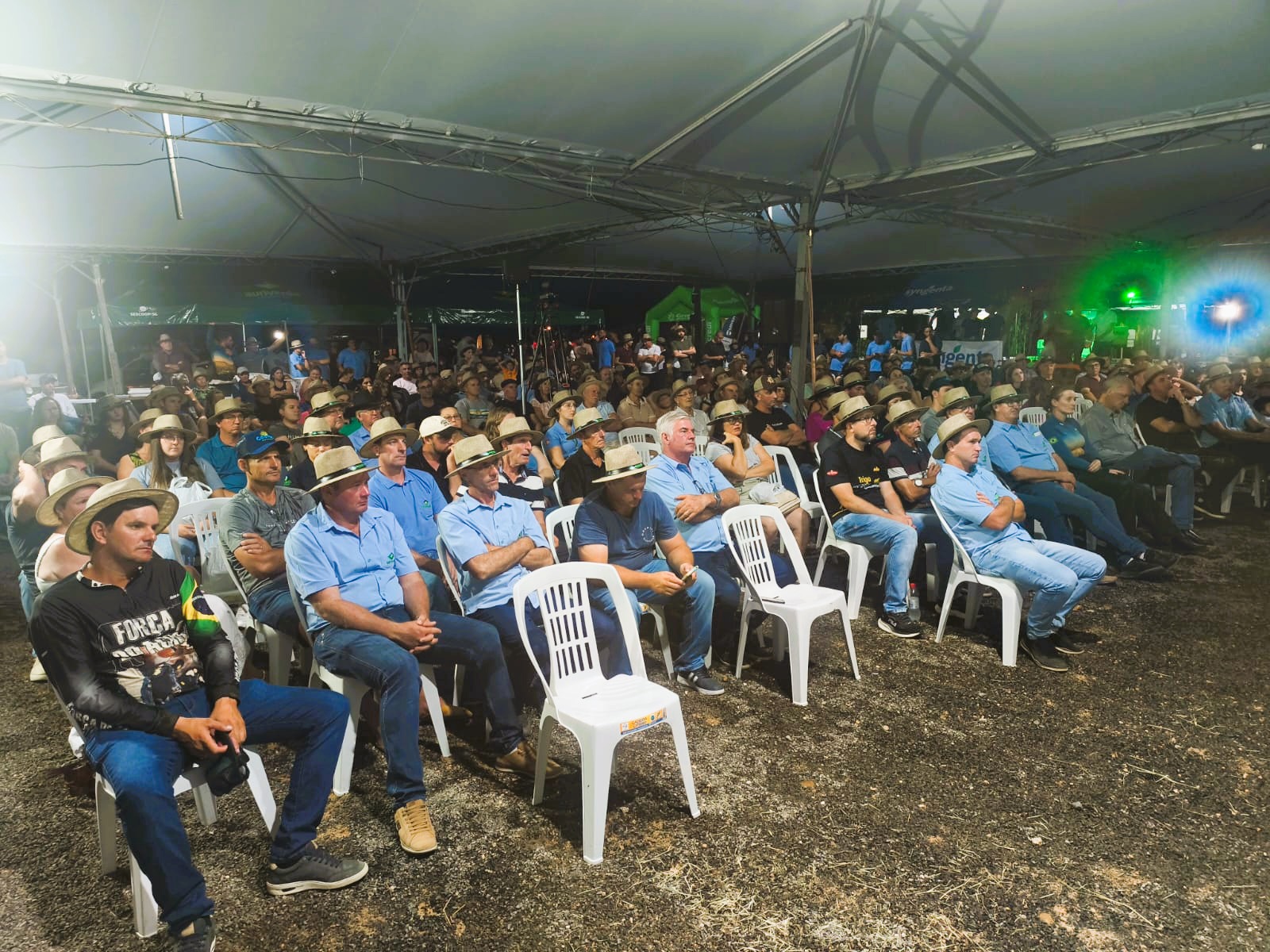 O evento reunia também espaços voltados a defensivos agrícolas, com comparações de aplicação, além de áreas dedicadas à cultura do fumo, que tem forte presença regional.