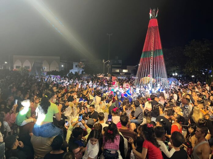 O ponto alto veio na contagem regressiva, quando as luzes da cidade foram acesas e o Papai Noel fez sua grande chegada, encantando crianças e adultos. A reação das famílias, emocionadas e reunidas na praça, marcou o momento como um dos mais especiais dos últimos anos.
