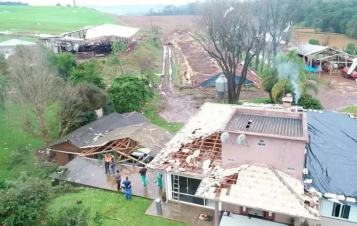 Pelo menos 50 edificações nas áreas rurais do município foram destruídas com a força do vento. A Defesa Civil ainda faz o levantamento da situação. Entre as comunidades mais atingidas estão Tiradentes e Barra Bonita. De acordo com a Defesa Civil, a tempestade ocorreu devido a uma frente fria sobre o Estado, associada a um sistema de baixa pressão atmosférica, que em contraste com a temperatura favorece a formação de um tornado.