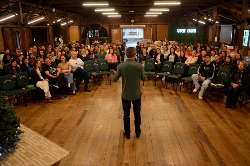 O reitor do Unibave, Guilherme Valente de Souza, também deixou sua mensagem: “É um momento ímpar de agradecimento aos que fazem acontecer o dia a dia da instituição”, afirmou, desejando a todos um Feliz Natal e boas festas.