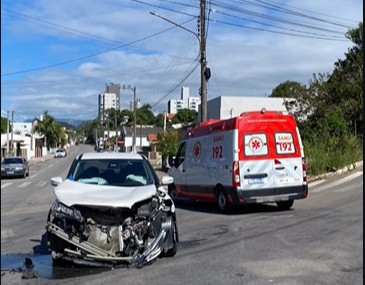 No início da tarde desta terça-feira (14), um acidente trânsito envolvendo um carro de passeio e um caminhão foi registrado em Lauro Müller, no cruzamento da Rua Orleans, na região central da cidade.