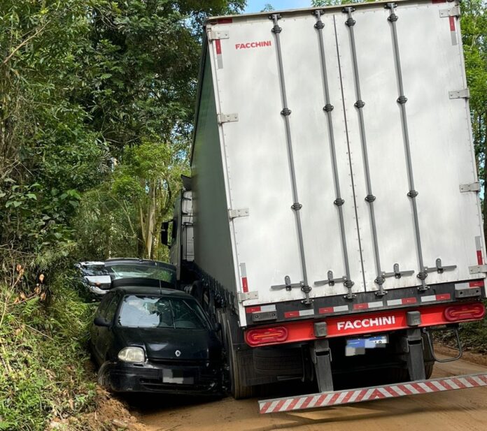 Na manhã desta terça-feira (25), por volta das 07h55 da manhã, a equipe do Corpo de Bombeiros Militar em Orleans foi acionada para atender a uma colisão lateral envolvendo o automóvel Renault Clio e o caminhão de modelo desconhecido.