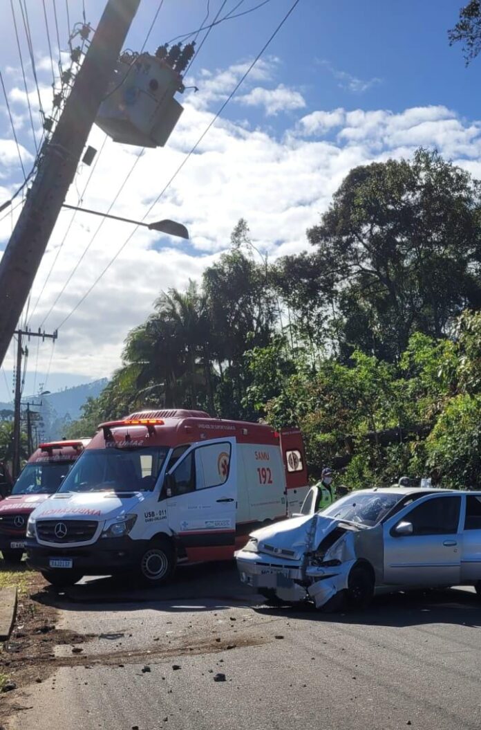 Quando a equipe do Corpo de Bombeiros Militar (CBMSC) chegou na ocorrência, o Serviço de Atendimento Móvel de Urgência (SAMU) já estava atendendo a ocorrência, onde se tratava de uma colisão de um automóvel em um poste. A condutora do veículo, uma mulher, nada sofreu. A criança que estava no banco traseiro, com o impacto sofreu ferimento corto contuso na testa.