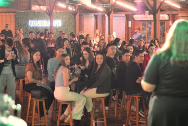 Os acadêmicos que estão nas fases finais dos cursos de graduação do Centro Universitário Barriga Verde (Unibave) participaram, na noite desta terça-feira (30/09), de mais uma edição do “Happy Hour Pós-Graduação Unibave”. O encontro, realizado no Centro de Vivências, teve comida, bebida, música ao vivo e karaokê, em um clima de celebração e leveza, mas também de reflexão sobre os próximos passos na formação acadêmica.