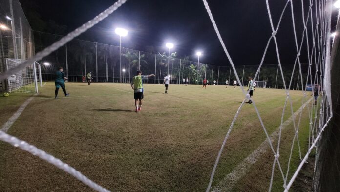 Durante o dia: Jogos de futevôlei na quadra de areia da Coopercocal