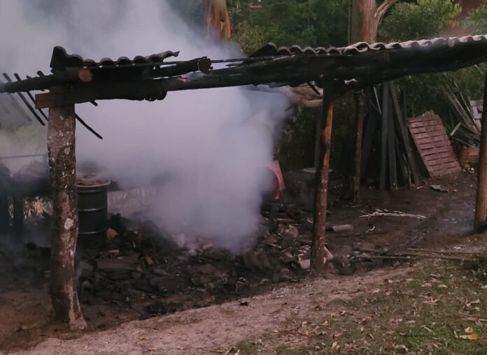 Chegando ao local a guarnição encontrou uma pequena estrutura de madeira, tipo paiol, já em fase de diminuição das chamas. Foi efetuado o combate e rescaldo da área de 4 metros quadrados, com 400 litros de água. O prejuízo estimado do proprietário foi de R$500,00.