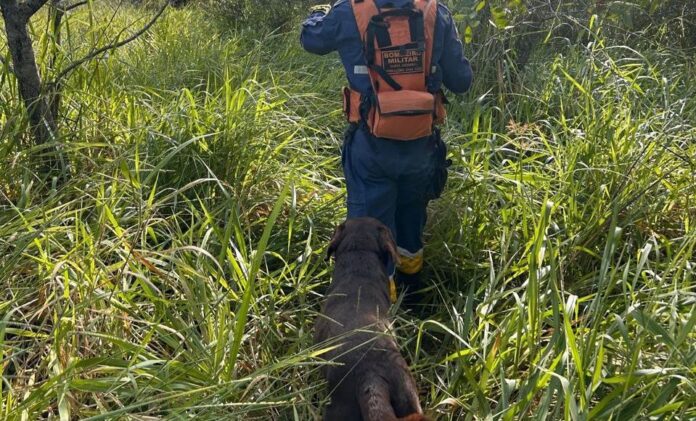 As ações desta segunda-feira (2) foram retomadas nas primeiras horas da manhã e contam com o reforço de um binômio formado pelo sargento Premoli e o cão de busca Bono. Também atuam na operação dois bombeiros militares e um bombeiro comunitário.