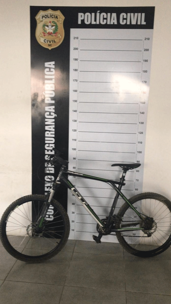 A Polícia Civil de Santa Catarina, através da Divisão de Combate a Furtos e Roubos (DCFR), da Delegacia de Polícia da Comarca de Tubarão, na tarde de hoje, recuperou uma bicicleta furtada no dia 19 de novembro deste ano, e identificou o furtador como sendo ALS, de 34 anos, e o receptador como sendo RPF, de 36 anos.