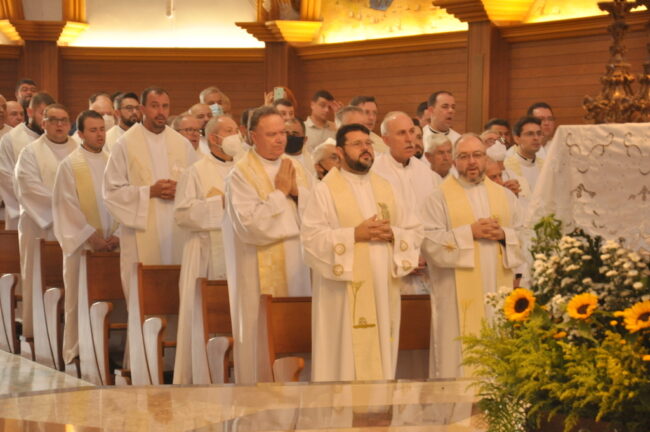 Durante sua homilia, Dom Jacinto Inacio Flach manifestou sua alegria em ordenar mais um sacerdote destacando que a ordenação sacerdotal é um dos momentos mais bonitos para a Igreja, que entrega ao povo um irmão ao serviço. “Não existe um padre sem eucarística ou consagração do pão e do vinho sem o padre, nesse mundo com tanto sofrimento e carente, precisando de bênçãos e é através do sacerdote que a presença de Deus pode ser anunciada para reinar nos corações”, disse o epíscopo. Celebrando 34 anos de sacerdócio neste sábado, Dom Jacinto também destacou que, assim como Cristo, o sacerdote coloca a sua vida à disposição de todos que precisam de salvação.
