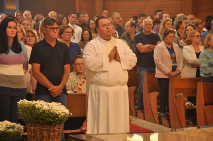 Foi sob o olhar protetor de Nossa Senhora, que o diácono Giliard Cesconetto Gava foi ordenado presbítero para a Igreja, na tarde deste sábado (7), em mais um dia histórico para a Diocese de Criciúma. A celebração foi presidida pelo bispo, Dom Jacinto Inacio Flach, e aconteceu no Santuário Diocesano Nossa Senhora de Caravaggio, em Nova Veneza, reunindo o clero, seminaristas, religiosos, familiares, amigos e autoridades.