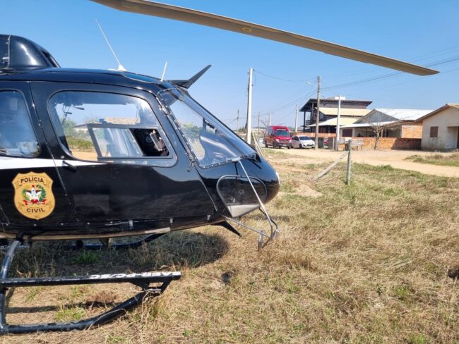 O helicóptero da Polícia Civil, tripulada pelos policiais do Saer e pelos profissionais da saúde do Samu/Aeromédico, foi acionado nesta quinta-feira (22), por volta 10h20, pela central de regulação medica para atendimento de uma feminina de 61 anos na localidade de Campo Bom, em Jaguaruna. A mesma foi encontrada por familiares em residência já desacordada.