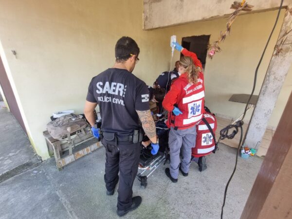 Os bombeiros voluntários de Jaguaruna prontamente iniciaram o atendimento de suporte básico da vida e realizaram o acionamento da equipe do suporte aeromédico. Na chegada da tripulação do SAER verificou-se tratar-se de um quadro neurológico grave com necessidade de incubação orotraqueal acesso venoso central e estabilização da vítima na cena.