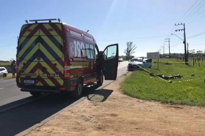 Uma colisão entre uma motocicleta e um carro, no bairro Morro Bonito, em Jaguaruna resultou na morte  de um idoso, de 67 anos. O acidente foi registrado  na rodovia SC-100, nessa quarta-feira, dia 15. Segundo os Bombeiros Voluntários de Jaguaruna (BVJ), o homem conduzia a motocicleta e foi encontrado caído às margens da rodovia, já morto, com sangramento no nariz e nas orelhas.