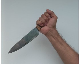 Em seguida, correu até a cozinha, empunhou uma faca e atacou seu vizinho. Posteriormente, dirigiu-se à sua companheira e cravou a faca em sua cabeça, sendo contido por amigos presentes no local.