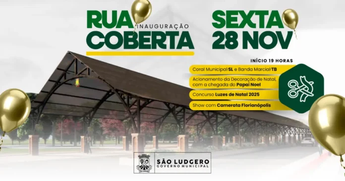 A Prefeitura de São Ludgero promove, na sexta-feira, dia 28 de novembro, a tão aguardada inauguração da Rua Coberta, um novo espaço urbanístico planejado para lazer, eventos e convívio comunitário. A cerimônia oficial inicia às 19 horas e reunirá apresentações culturais, o acendimento das luzes natalinas e a chegada especial do Papai Noel.