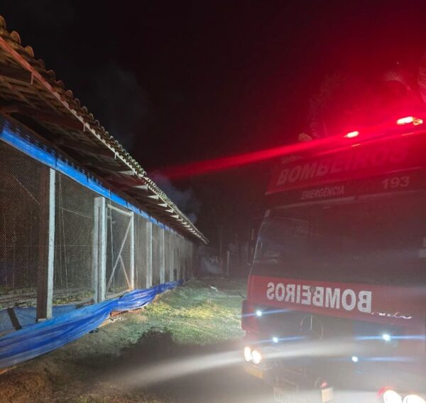 Ao chegar ao local, a equipe constatou que o fogo havia atingido um aviário com área total de aproximadamente 1.500m², onde o incêndio havia atingido uma área aproximada de 600m2, sendo realizado o primeiro combate pelos proprietários através de uma bomba d’água.