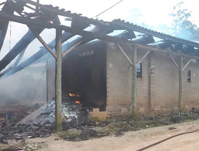 Um incêndio atingiu uma estufa de fumo em Capivaras Alta, Lauro Müller. A ocorrência foi registrada na quarta-feira (23), por volta das 15h55min.