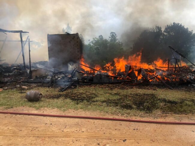 Segundo o Corpo de Bombeiros, no local, se tratava de um incêndio em residência unifamiliar de madeira já em fase completa de desenvolvimento e com as chamas atingindo um paiol anexo a residência e uma estufa utilizada como depósito de materiais.