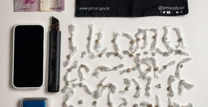 Na noite desta segunda-feira (27), por volta das 18h14, a Polícia Militar atendeu a uma ocorrência de tráfico de drogas, em Orleans. O fato ocorreu na Rua São Paulo, bairro Alto Paraná. A ação foi desencadeada após denúncia anônima de comércio de entorpecentes em uma residência já conhecida pela atividade criminosa no bairro.