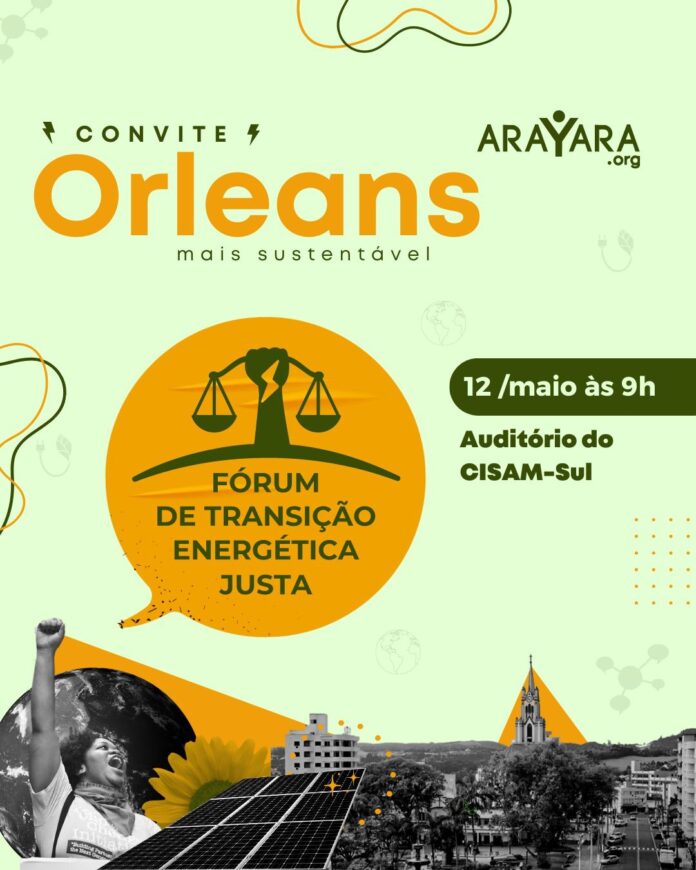Acontece em Orleans, no dia 12 de maio, às 9 horas, no auditório da CISAM-SUL, o lançamento do Fórum de Transição Energética Justa e Sustentável de Orleans.