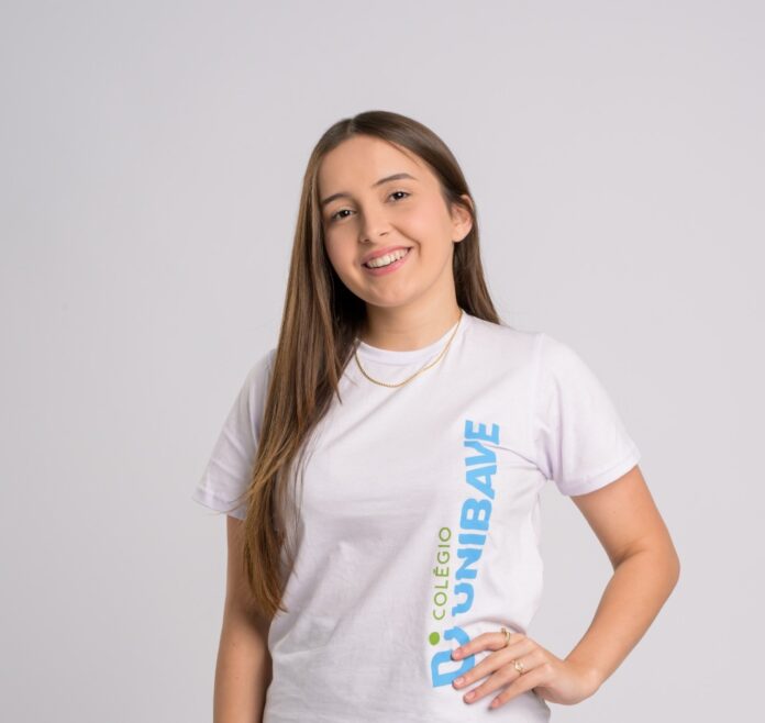Além de cursar o terceiro ano do Ensino Médio no Colégio Unibave, atualmente ela é estagiária da educação infantil da unidade do Centro da instituição, atuando como auxiliar de sala de Educação Infantil. A mãe revela que, quanto ao futuro, a jovem estudante já manifestou interesse por algumas profissões, passando por Perita Criminal e Biomedicina, mas que, atualmente, depois que conviveu com as crianças no Colégio Unibave, ela já fala em Pedagogia. “Ela se encantou com a profissão, e que a pro. Jú (Juciélli Mattos Baggio, professora com quem trabalha) é uma inspiração”, relata.