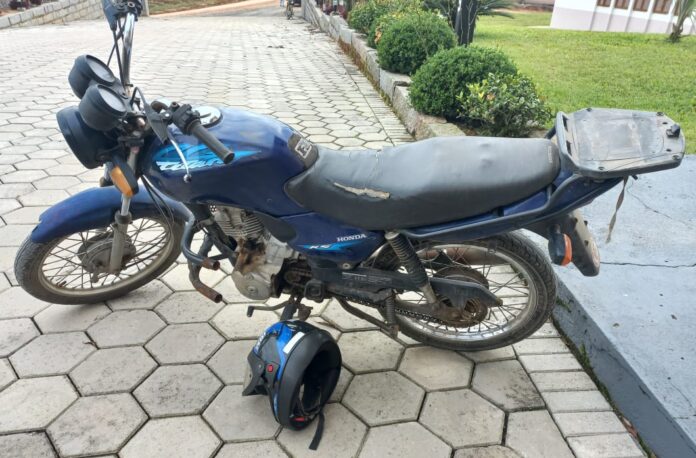 A Polícia Militar de Grão-Pará recebeu na tarde deste domingo (01), uma denúncia sobre uma motocicleta abandonada nas proximidades da igreja do bairro Rio do Meio. No local, os policiais realizaram buscas e localizaram a motocicleta.