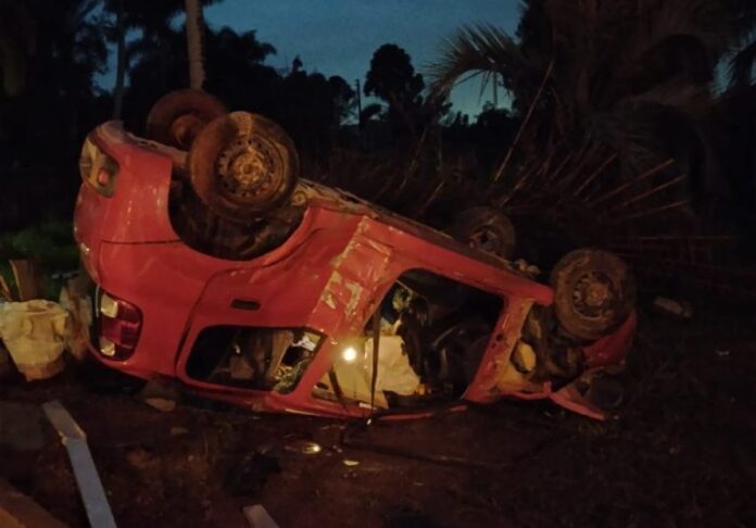 Segundo a Guarnição, tratava-se de um veículo capotado no pátio de uma residência as margens da rodovia com um ocupante. O homem estava no interior do veículo, consciente, orientado, sinais vitais alterados (hipertensão e taquicardia). O ocupante estava com os membros inferiores presos ao volante e painel do veículo, para extração do paciente foi realizado desencarceramento tipo físico pela Guarnição.