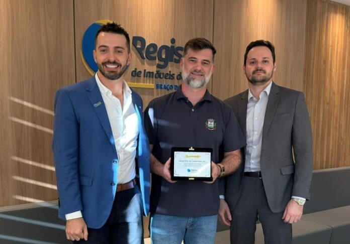 Em visita institucional ao Cartório de Registro de Imóveis de Braço do Norte, Grão-Pará recebeu um reconhecimento como o Município que mais entregou unidades regularizadas por meio de REURB ao longo do ano de 2025.