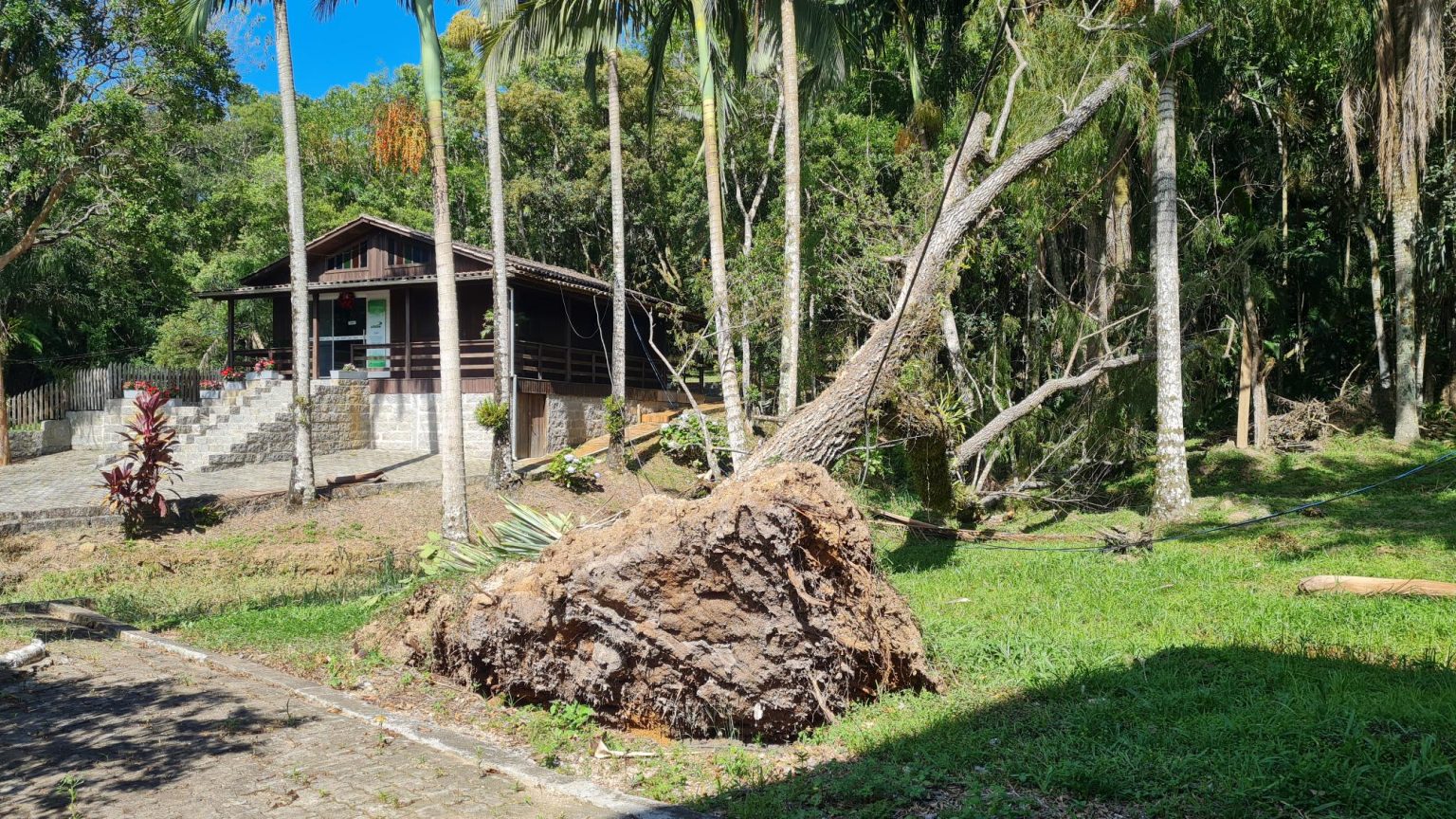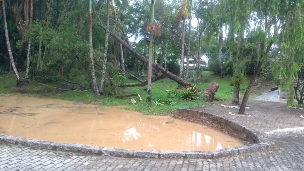 Além do destelhamento, uma árvore caiu próximo da reitoria do Unibave, causando a interrupção de energia elétrica no setor.
