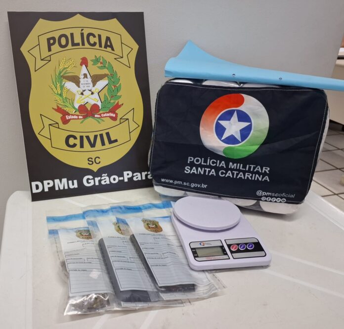 Ao ingressar na residência, o suspeito foi abordado e informado sobre as ordens judiciais. Conforme a PM, durante as buscas no interior do imóvel, os policiais localizaram uma porção de maconha, uma balança de precisão, dois aparelhos celulares e uma munição calibre .22.