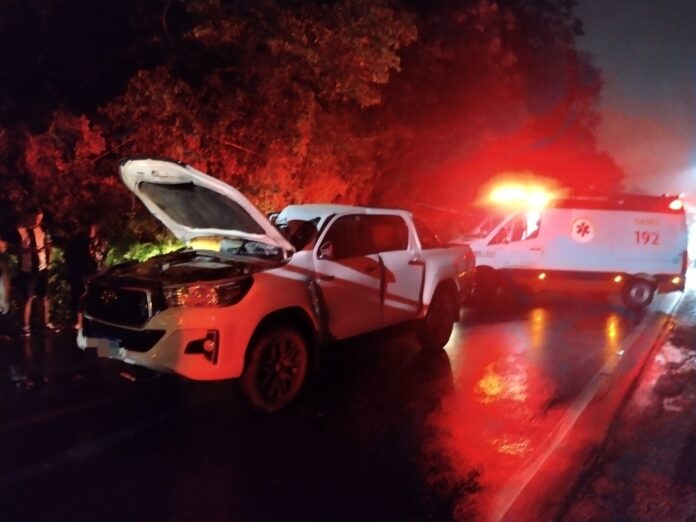 O acidente foi registrada por volta das 21h33 desta quarta-feira (12), e de acordo com informações do Corpo de Bombeiros, o veículo Toyota Hilux colidiu na traseira de um caminhão na subida da rodovia SC-390.