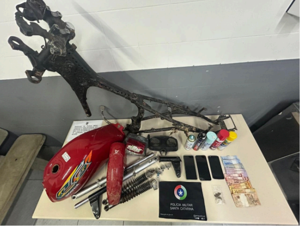 As demais partes do veículo foram localizadas em uma área de mata próxima. O homem, de 21 anos, assumiu a posse da droga e afirmou ter comprado uma das peças da motocicleta para “enfeite”, negando envolvimento com a pichação. Ele foi conduzido ao IML e posteriormente à Central de Flagrantes de Criciúma, onde foram adotadas as medidas cabíveis.