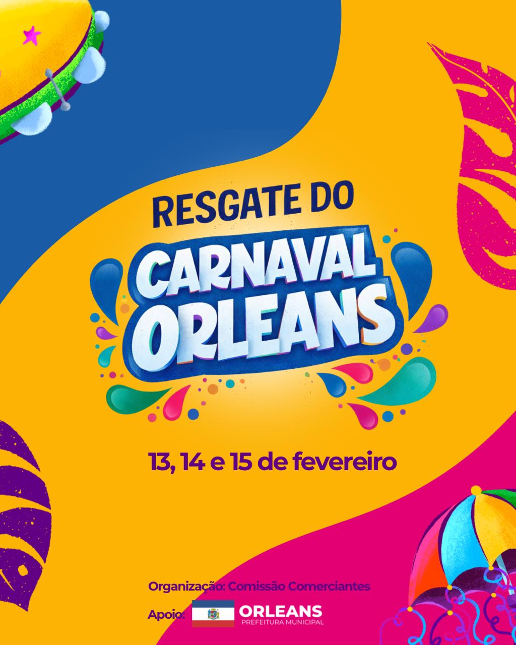 Após mais de dez anos sem uma programação oficial de Carnaval, Orleans volta a promover o evento com atrações abertas ao público. O Resgate do Carnaval de Orleans será realizado nos dias 13, 14 e 15 de fevereiro, marcando o retorno de uma das manifestações culturais mais tradicionais do município.