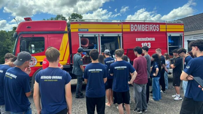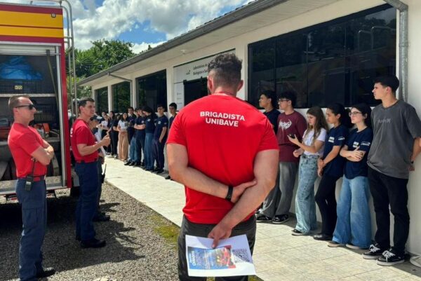Os estudantes do programa Jovem Aprendiz do Centro Universitário Barriga Verde (Unibave) participaram de uma atividade prática durante a visita do Corpo de Bombeiros de Orleans ao campus nesta semana. A ação proporcionou uma experiência de aproximação dos participantes do programa à rotina dos profissionais que atuam na proteção e no cuidado da população.